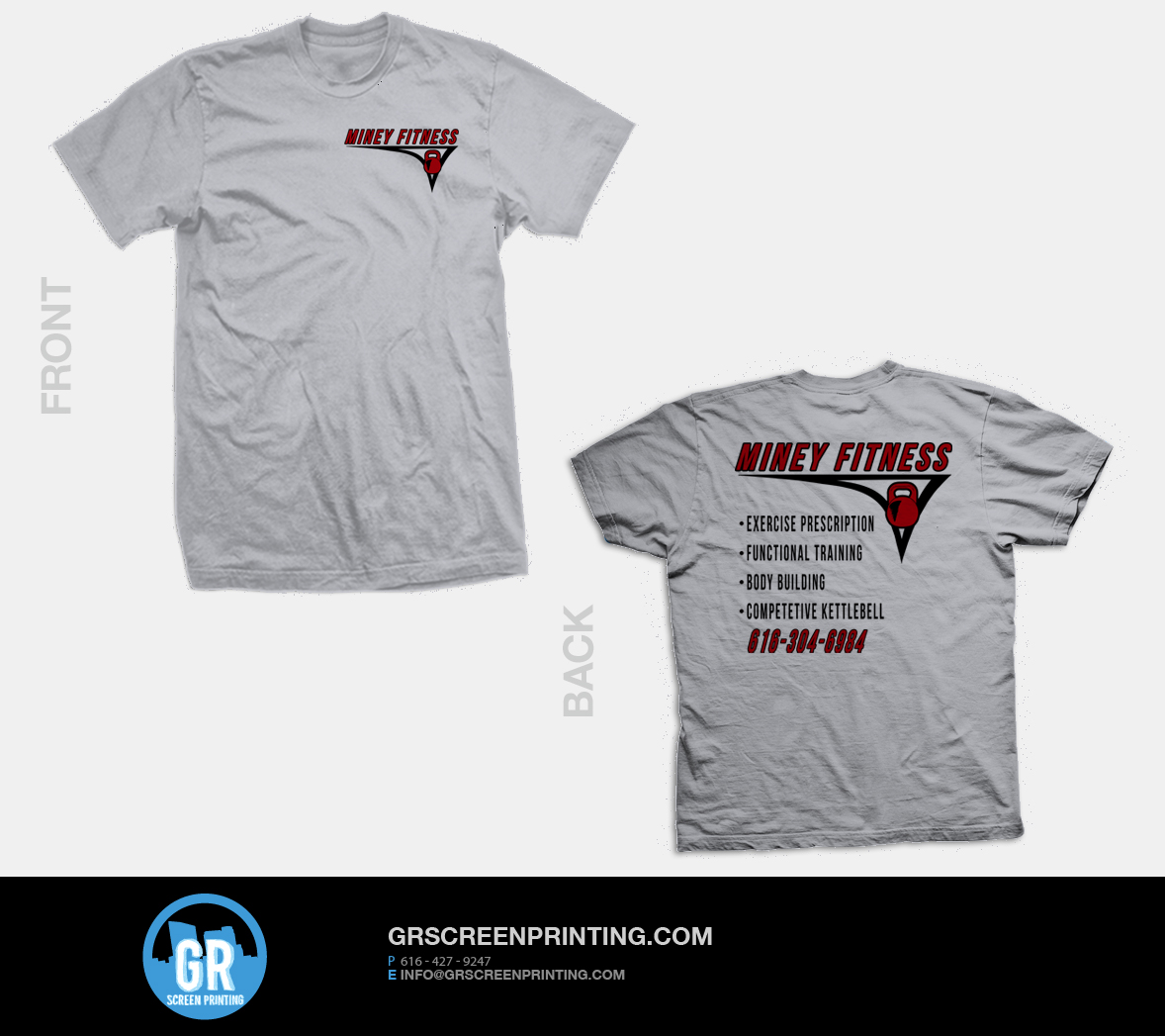Grand Rapids Screen Printing just finished up designing the logo for Miney Fitness, known best for there competitive kettlebell workouts. They did a sharp run of grey and purple shirts. We’re excited for Jason and everyone at Miney Fitness as their business is picking up!